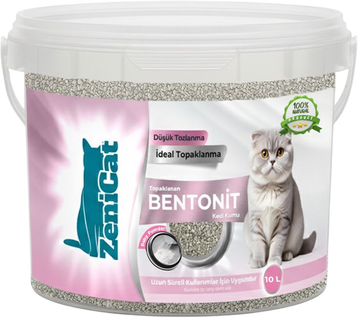 Zenicat Bebek Pudrası Kokulu Renkli Kedi Kumu İnce Taneli Doğal Bentonit 10 Lt, üstün emiş gücü ve doğal koku giderme özellikleriyle evcil dostlarınız için benzersiz bir deneyim sunar. Aktif karbon içeriği sayesinde kötü kokuları etkili bir şekilde hapseder ve ortamda tazelik sağlar.