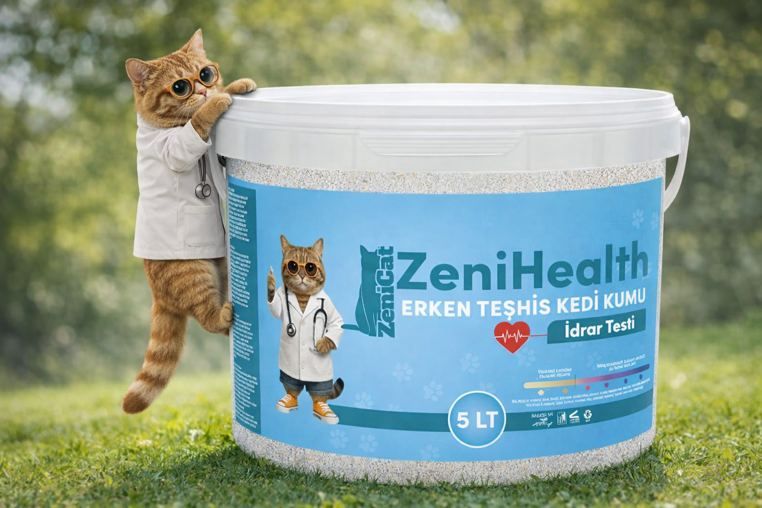 ZeniCat ZeniHealth Erken Teşhis Bentonit Kedi Kumu 5 Lt – pH Seviyesine Göre Renk Değiştiren, Kan Tespitli, İnce Taneli